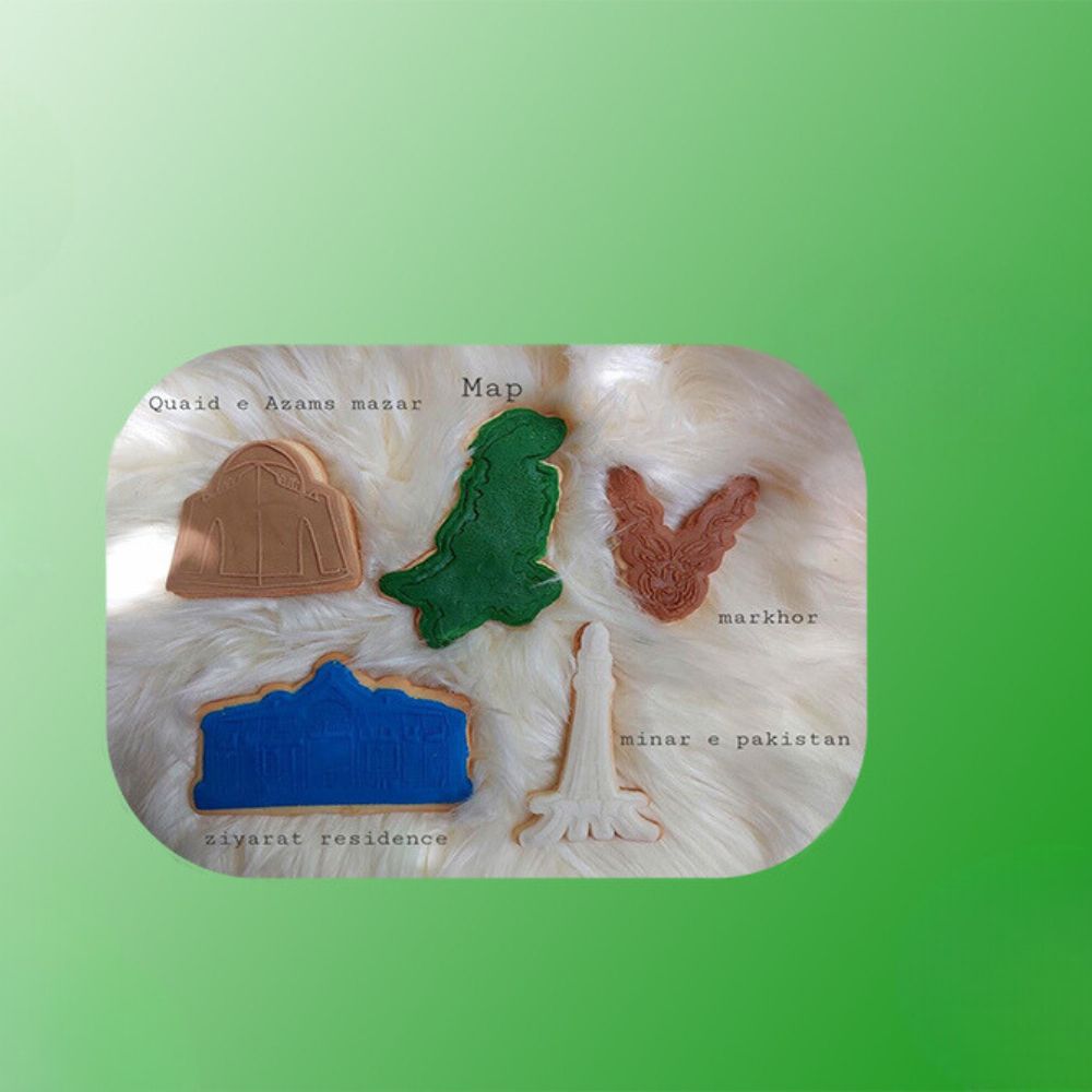 Pakistan famous monuments engraved on a cookie. 6 Pieces loaded with delicious vanilla butter flavor.