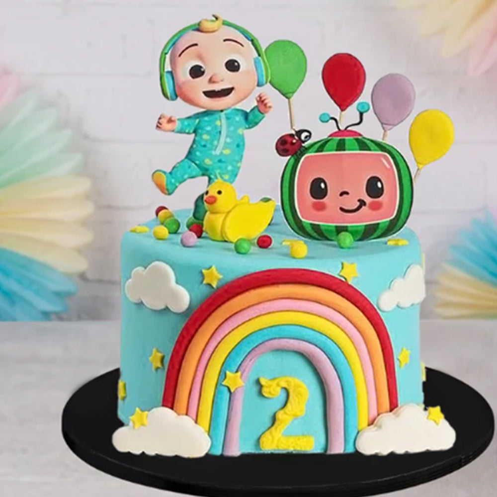 Celebrate your little one's special day in style with the Cocomelon Party Palooza Birthday Cake! This 4-pound cake is sure to captivate with its Belgian Chocolate Fudge Flavor and bring the beloved characters to life! Make it a day to remember with Sacha's!