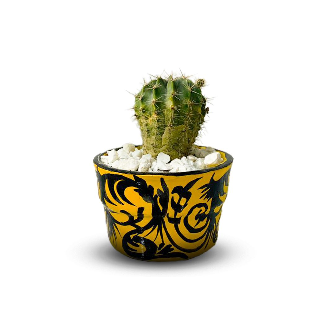 Cactus planted in terracotta planter hand painted with gorgeous artwork. A green gift for your dear ones. Adding to your home decor or workstation will create an aesthetic colorful vibe.
