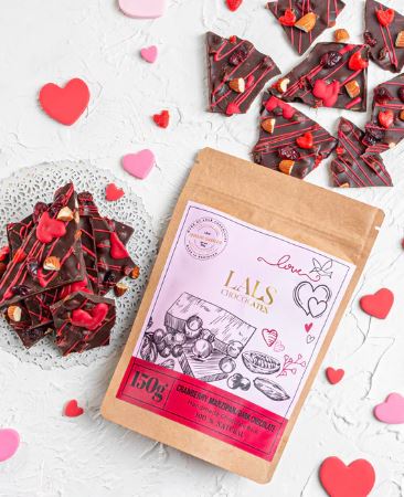 150 grams of Cranberries, Nuts and Marzipan Heart in Dark Chocolate Bark