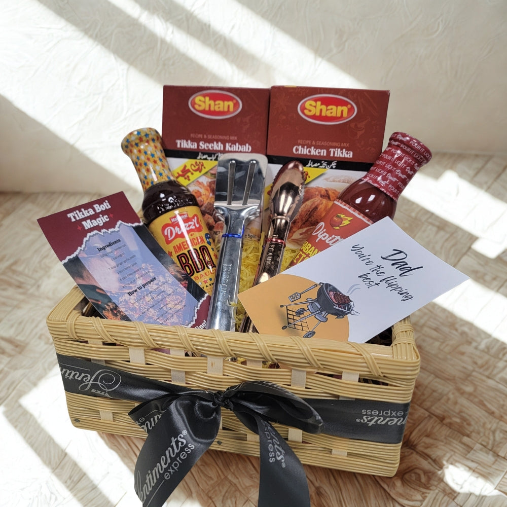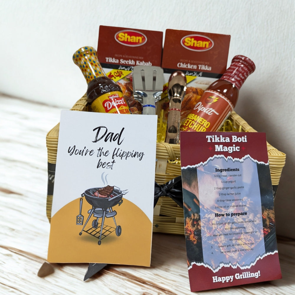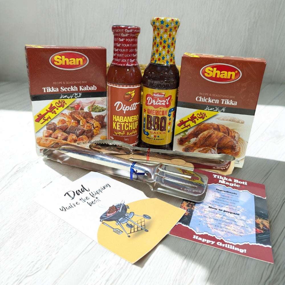 Gift Dad the ultimate grill master’s kit and watch him turn the heat into BBQ flames! Featuring Shan Chicken Tikka Masala and Tikka Seekh Masala for bold, authentic flavours, fiery Dipitt Habanero Ketchup, and smoky National Drizzl BBQ Sauce to add that perfect kick. Two BBQ tongs and a recipe card make grilling effortless, while the cheeky “Dad! You’re the flipping best” keepsake reminds him how much he’s loved. Celebrate Dad’s flair for flavour with this festive, flavour-packed set.