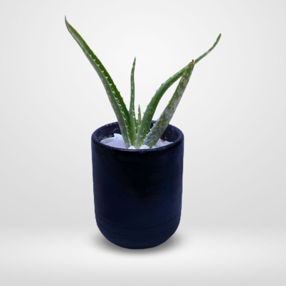 Alovera potted in hand painted clay pots. It gives a beautiful aesthetic look to the stationed placed to be used as minimalistic decor to your workspace or home or gift a soothing sustainable addition to someone library of art.