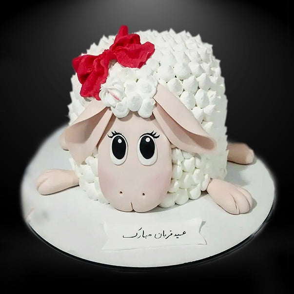 Celebrate the occasion of sacrifice with this beautiful sheep theme bento cake, infused with Chocolate Fudge flavor, serving size 3 pounds