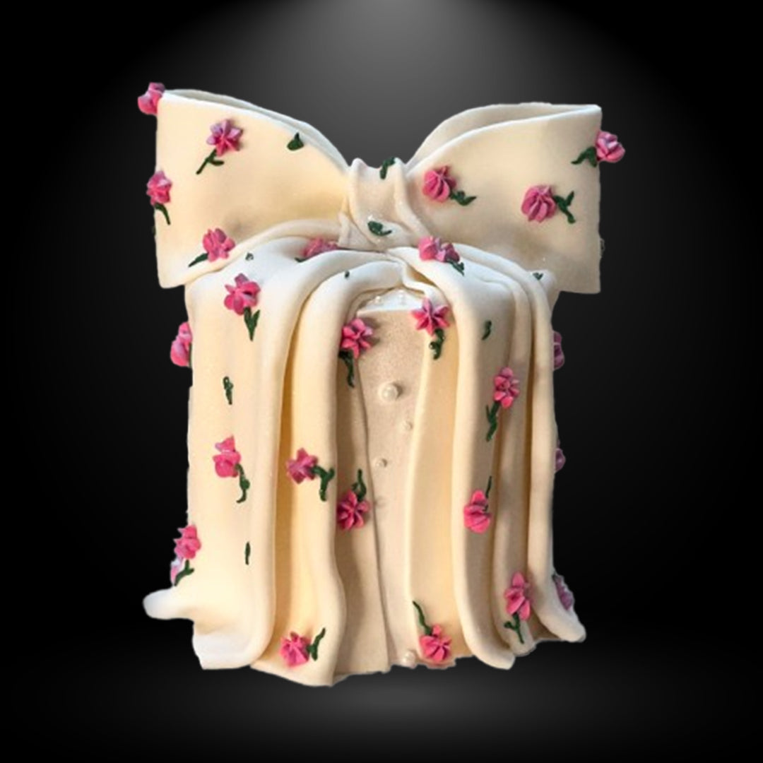Indulge in our luxurious 3 lbs Chocolate Fudge Floral Bow Cake — rich, moist, and beautifully adorned with a delicate floral bow for a touch of elegance on any occasion.
