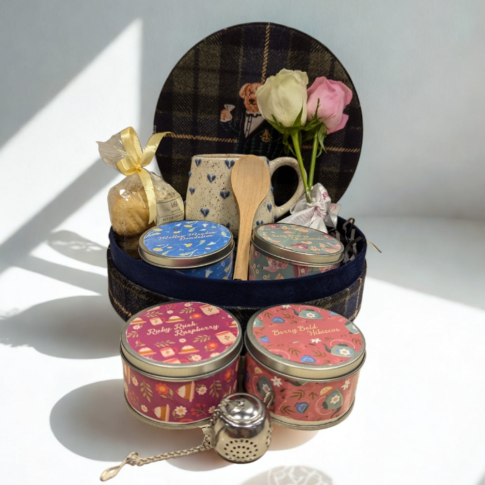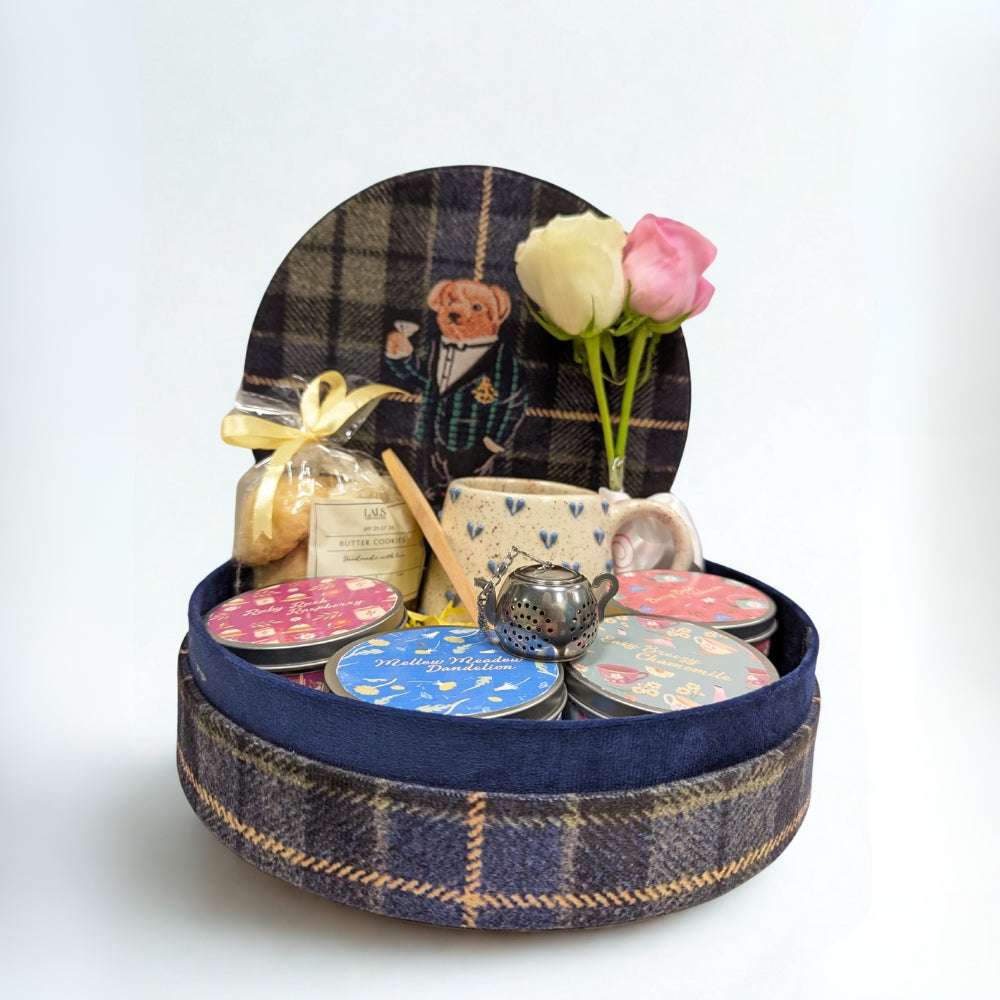 For the man who’s always doing everything for everyone, here’s a little something just for him. This premium round blue and green checkered leather box is a gentle invitation to pause—whether it’s an early morning moment or a quiet evening unwind. With calming teas, a heartfelt mug, and a few thoughtful touches, it’s the perfect way to say, “Take a moment—you deserve it.”