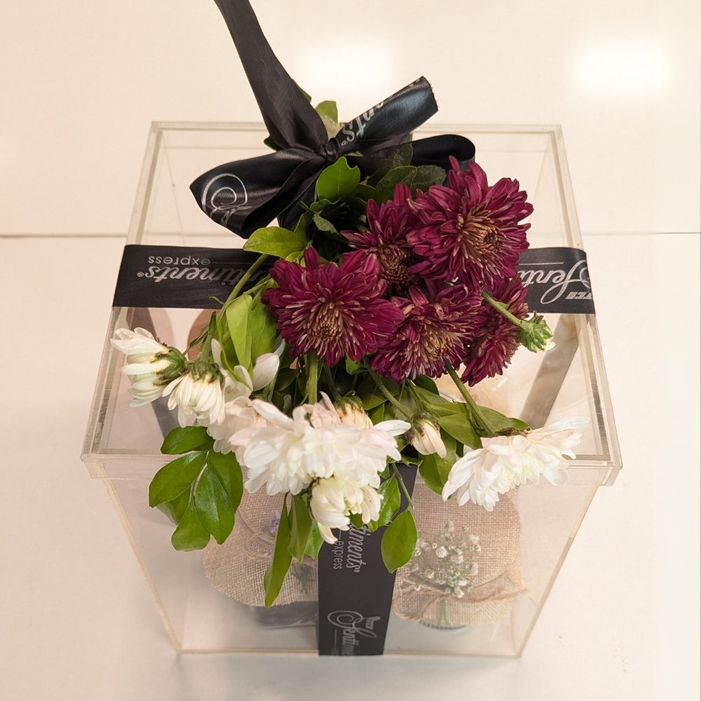 5. Two daisy stems (Maroon and White) delicately placed on top — a soft reminder to pause, bloom, and breathe