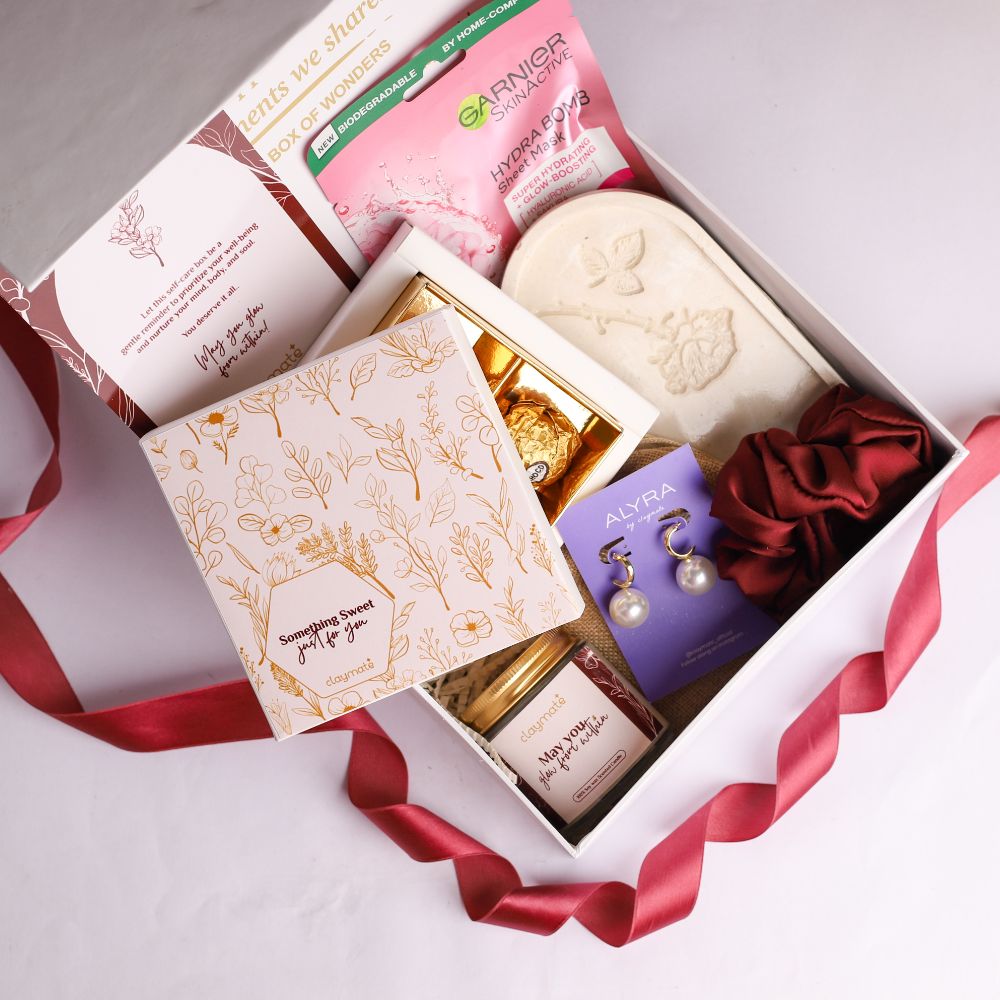 The "Self-Care Glow" Gift Box is designed to rejuvenate and pamper. Filled with luxurious self-care essentials, it’s the perfect way to encourage relaxation and radiance. Ideal for treating yourself or a loved one.