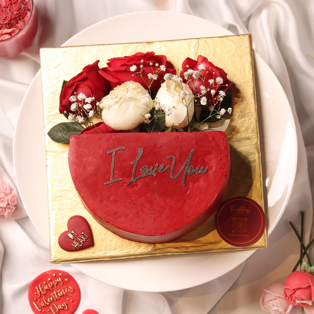 Celebrate your special moments with our stunning Half Red Moon Cake with Flowers. Designed in a unique half-moon shape and finished in an elegant red theme, this cake is beautifully decorated with delicate floral details. Perfect for birthdays, anniversaries, engagements, or romantic occasions, it features soft, moist sponge layers and smooth, creamy frosting for a delightful taste. A graceful and eye-catching cake that adds charm and sweetness to any celebration.