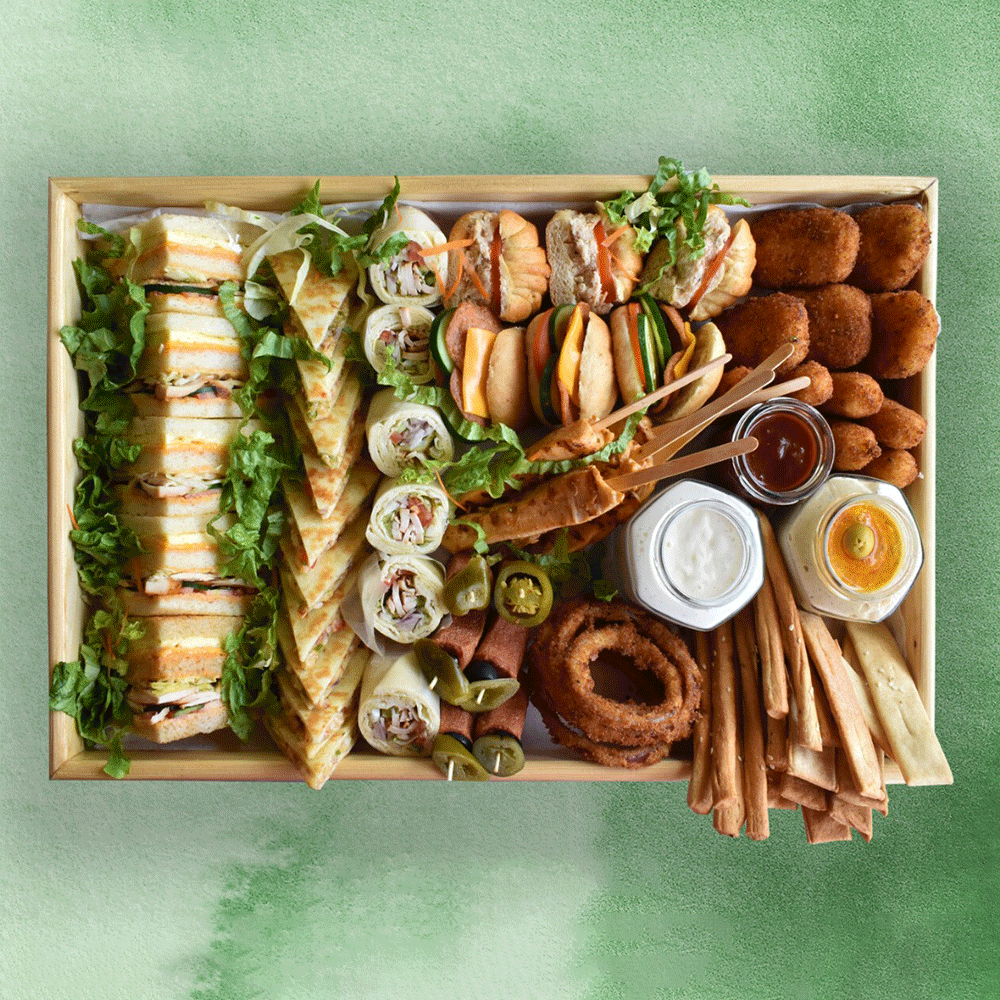 * Chicken Cutlets * Mini Chicken Croissants * Cheese & Vegetables Sliders * Cheese Sticks * Cheese Cream Dip * Hummus Dip