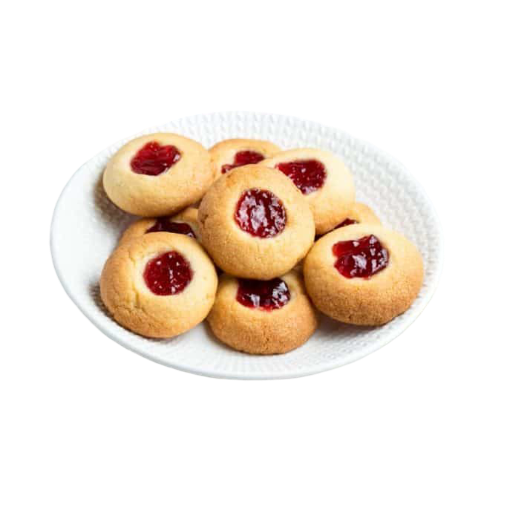 Sweet biscuits filled with fruity jam, perfect for a sweet treat or dessert.