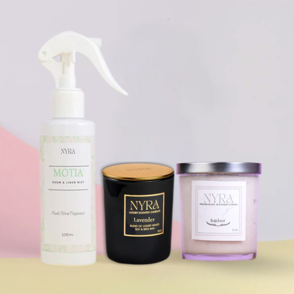 Indulge in luxury with this fragrant trio. Enjoy the rich Bakhoor, calming Lavender, and refreshing Motia mist—a perfect gift for creating a serene and inviting ambiance.