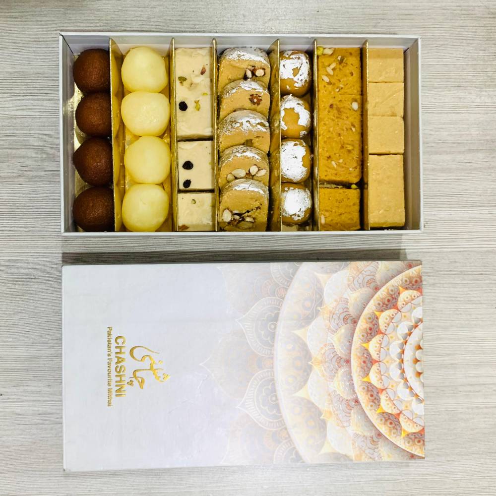 An elegant selection of traditional mithai, delicately packed for those who appreciate timeless flavours and subtle indulgence. From soft cham cham to nutty rolls and fragrant zafrani treats, this box is a graceful ode to classic sweetness in every bite.