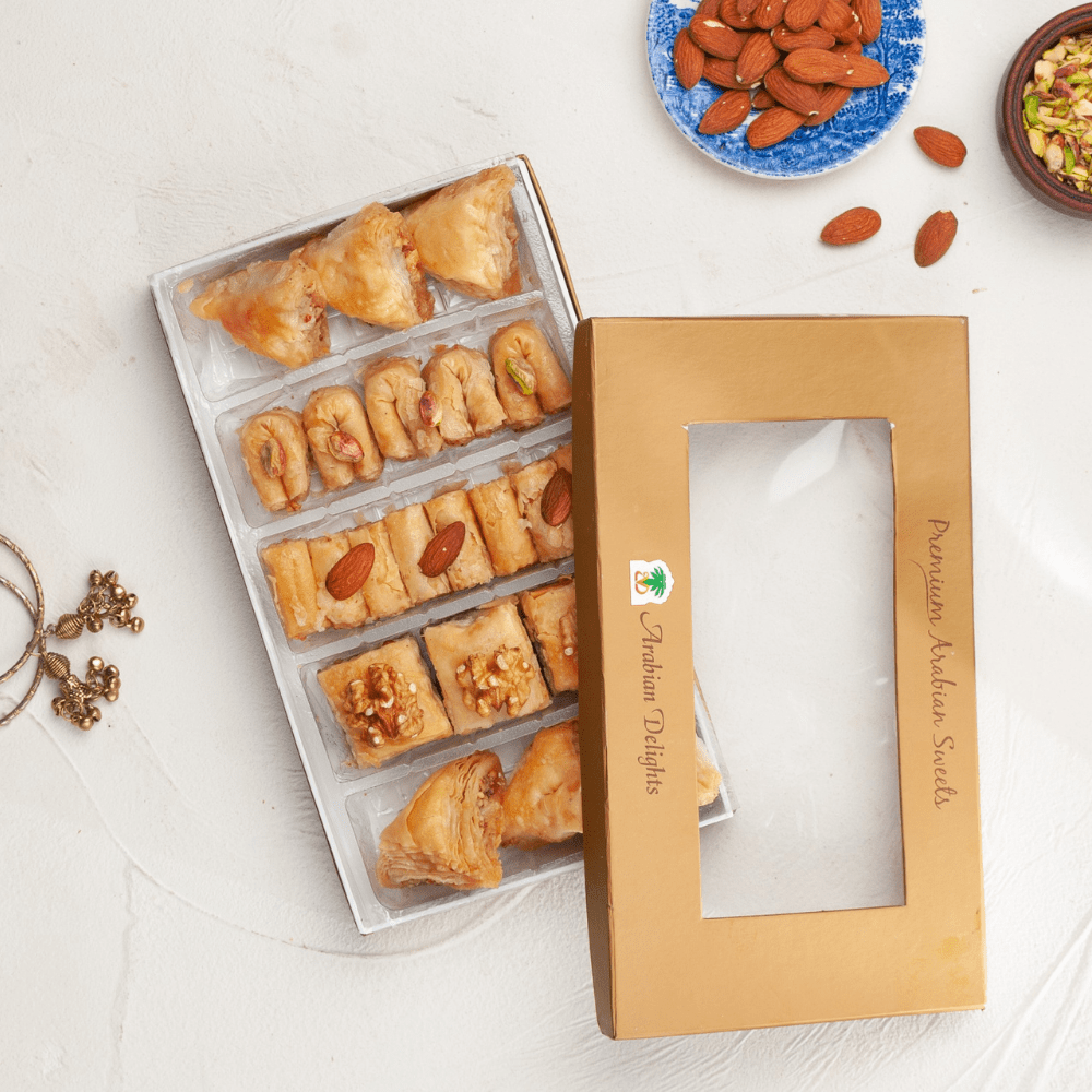 One can never go wrong with this Premium Small Baklawa Box 700GM, whether for birthdays or holidays or merely as an unexpected surprise, for no reason at all, making it the perfect gift to express your affection and show just how much you care.
