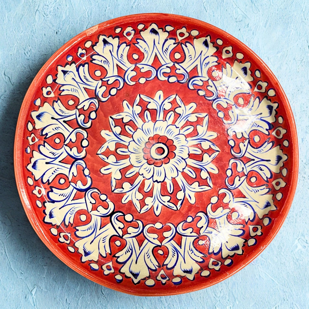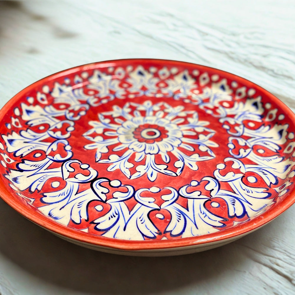 Bold in hue and rich in heritage, this red Multani serving plate blends function with folk artistry. Handcrafted with love and finished with vibrant patterns, it’s perfect for sweets, snacks, or simply serving beauty at every table.