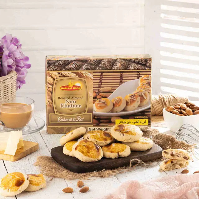 Savor the crunchy, nutty delight of Roasted Almond Nan Khatai. This 100-gram pack features traditional Indian shortbread cookies enriched with roasted almonds, offering a perfect balance of sweetness and crunch. Ideal for teatime or as a special treat!