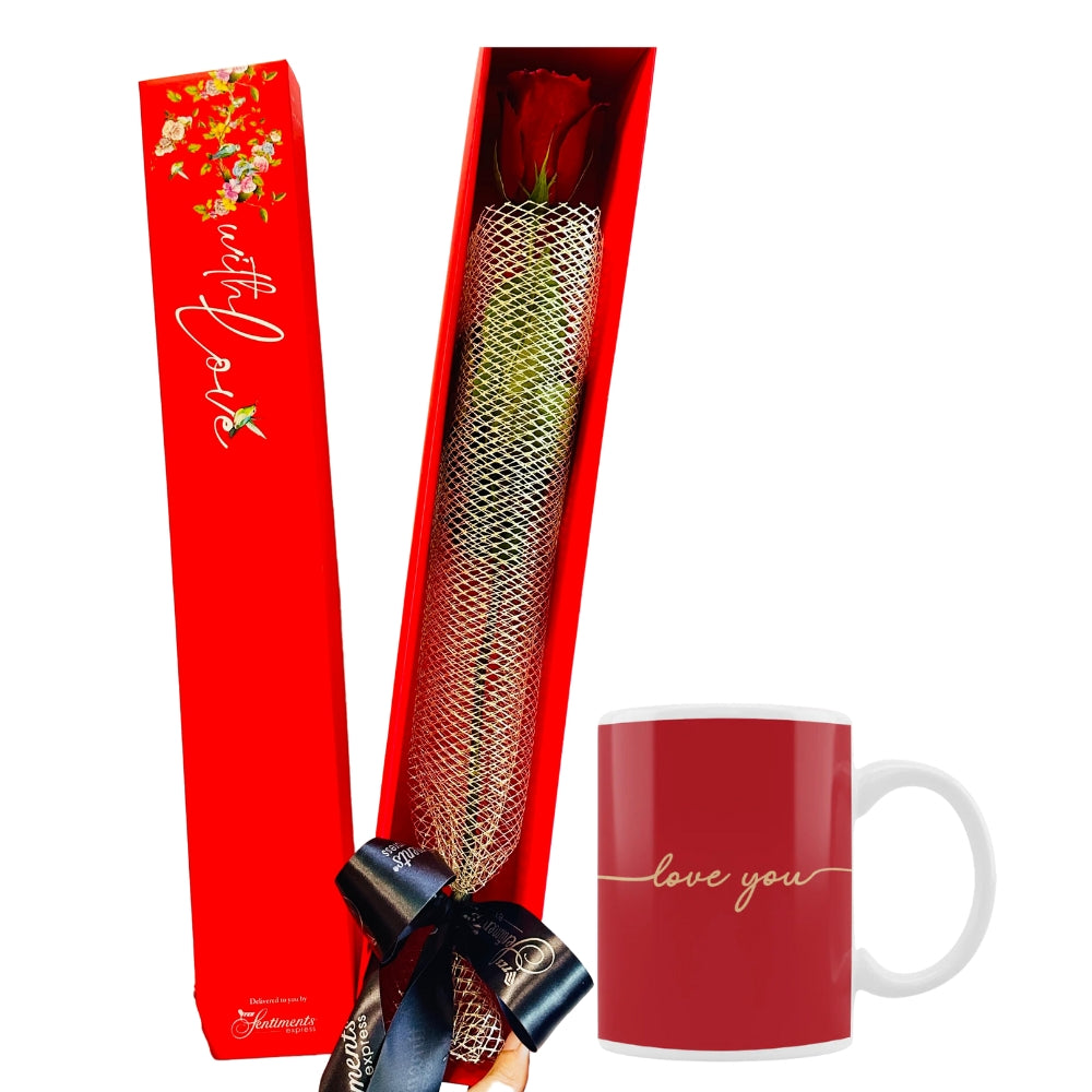 Single Imported Long Stem Rose in With Love Box & Love You Mug