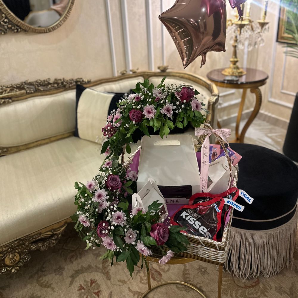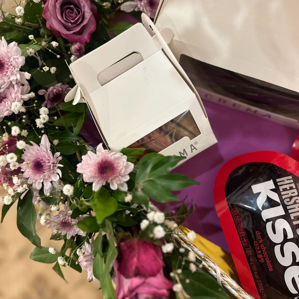 Indulge in the art of gifting with our lavish, extra-large snack basket — thoughtfully curated for any celebration. It features a delightful assortment including a 2 pound cake (can add a personalised message on top), macarons or cookies, two large tins of crispy wafers, two packs of delicious cookies, a 1.5-liter beverage, and two packs of rich imported chocolates. Beautifully accented with fresh florals, this basket exudes luxury and sweetness in every detail.