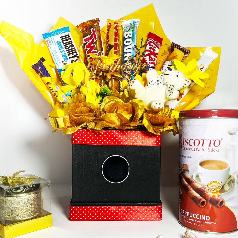 A delightful mix of chocolates, teddy, and flowers to make their day unforgettable.