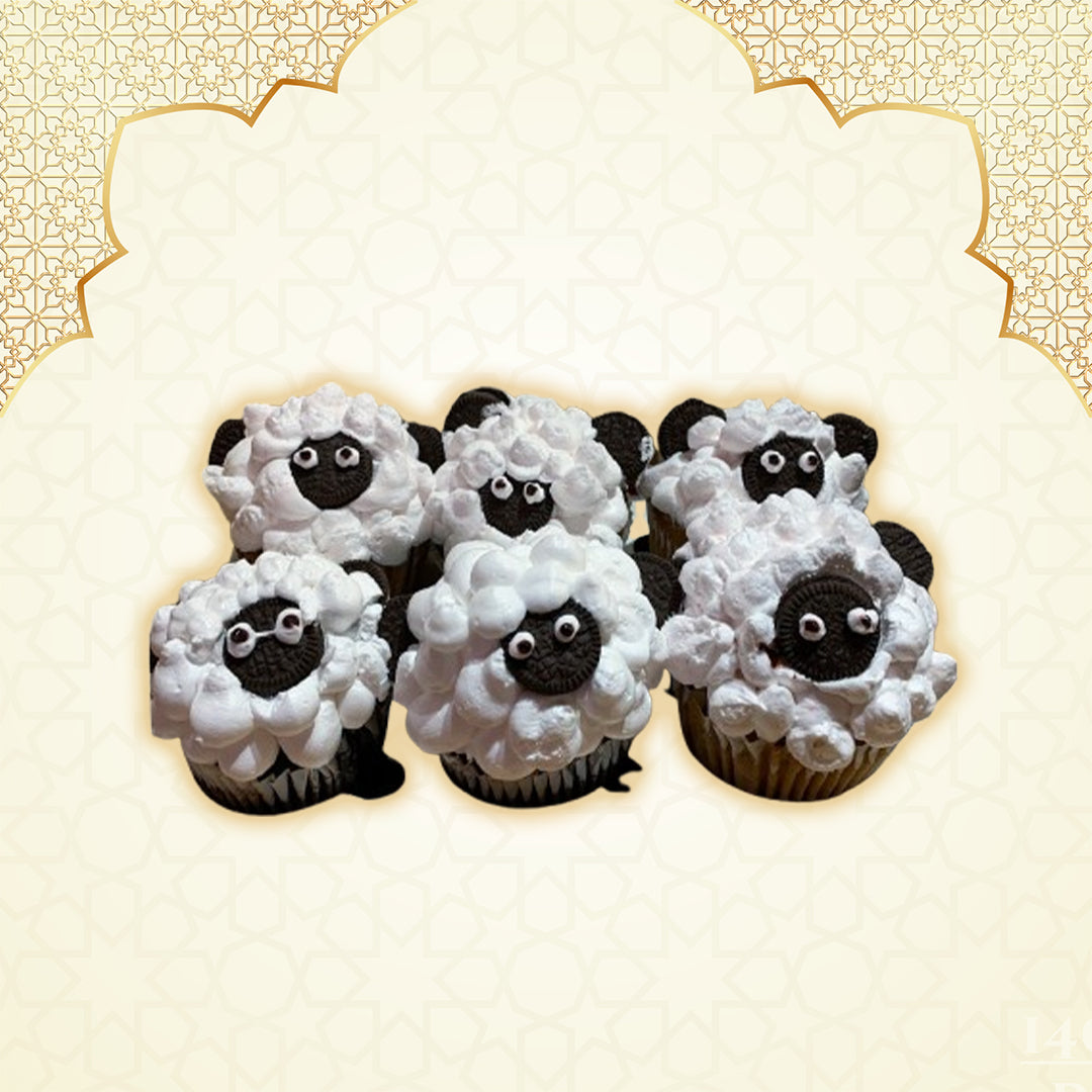 Eid ul Adha Sheep-Themed Cupcakes – A delightful box of 6, with 3 vanilla and 3 chocolate cupcakes, perfect for sharing sweet moments this festive season