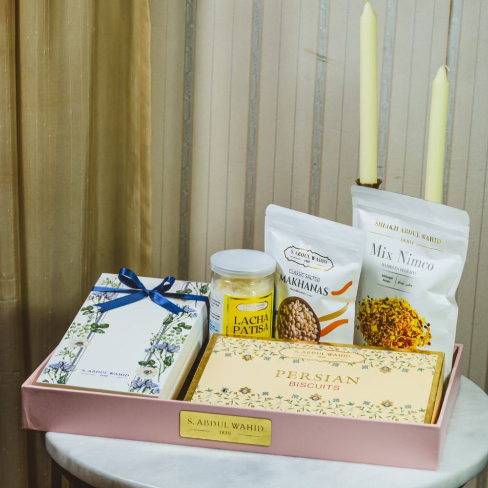 8 PC Sweet Box + Persian Biscuits + Mix Nimco + Salted Makhana + Lacha Patisa