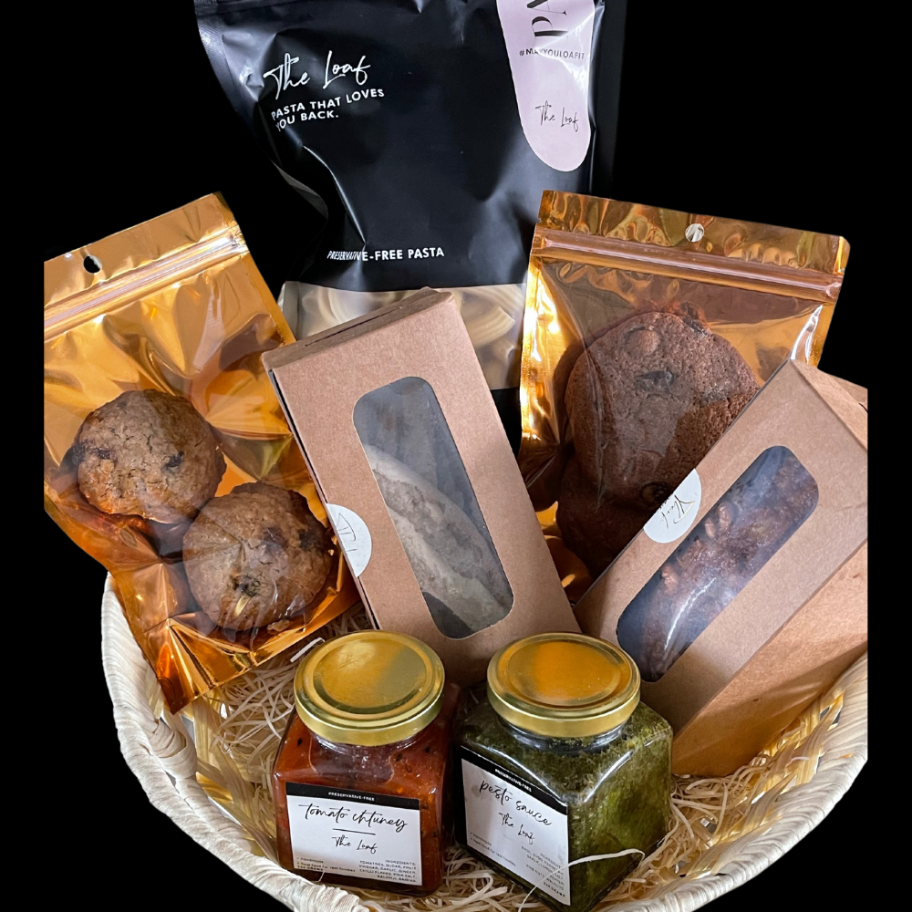 Indulge in a delightful combination of savory and sweet with our Pasta & Cookies Delight Basket! This charming wooden basket overflows with gourmet treats, perfect for a cozy night in or a thoughtful gift. It consists of: