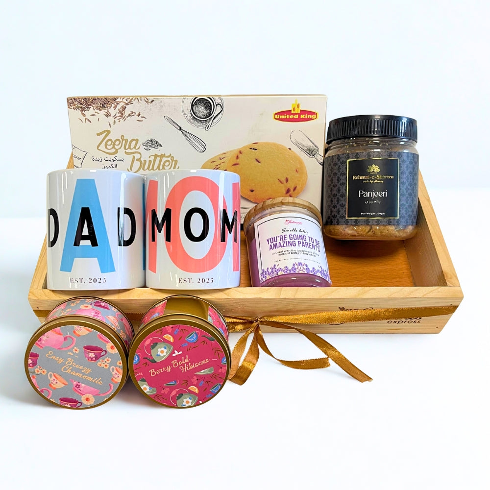 Parenthood comes with sleepless nights, endless cuddles, and countless cups of tea. This basket is designed to wrap new parents in comfort, care, and a touch of fun — because they deserve a little extra love as they begin this beautiful new chapter. From hearty treats to soothing teas and a candle that says it all, it’s the perfect way to say congratulations.