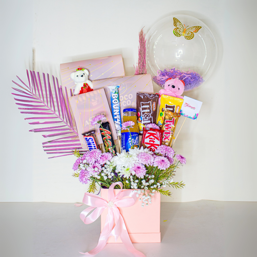 Elevate your gifting experience with Whimsical Treat – a beautifully crafted gift box blending fresh flowers, premium chocolates, and charming accents. Perfect for birthdays, anniversaries, and special occasions, this unique arrangement captures elegance and sweetness in one. Order now to make every moment unforgettable with a thoughtful, Instagram-worthy gift!