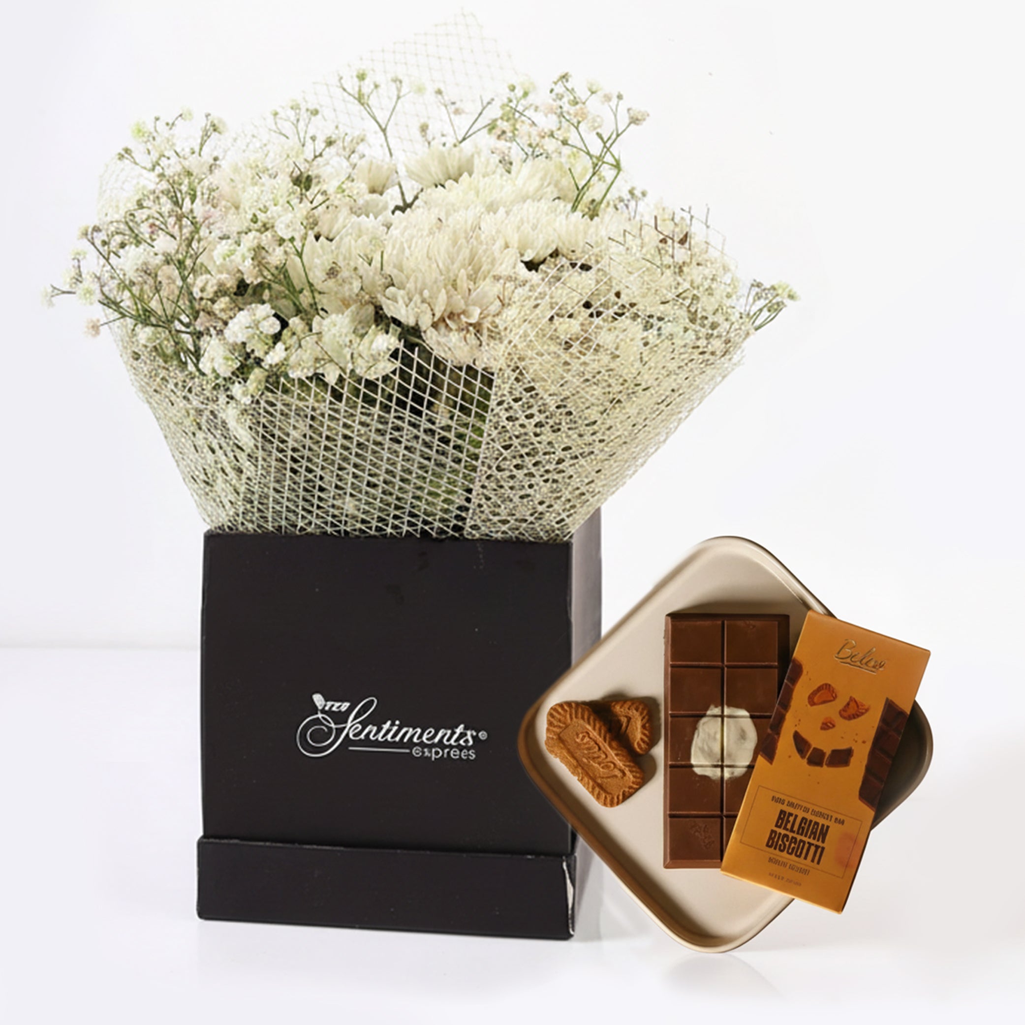 A vision of calm and comfort. The golden crunch of biscotti paired with the gentle purity of white blooms makes this combo an instant favorite for minimalists and classic souls alike. Perfect for serene winter mornings or thoughtful gifting.
