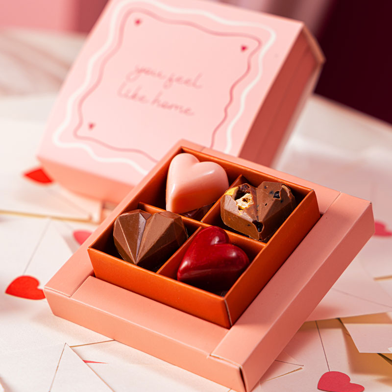 Our You Feel Like Home sleeve box holds 4 handcrafted bonbons perfect for cozy, love-filled gifting.